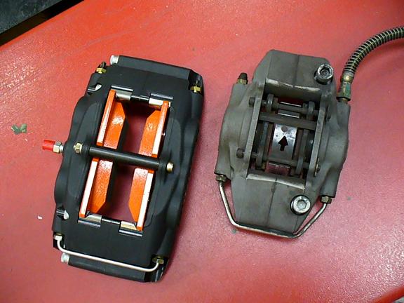 左が装着したキャリパ− 右側がLotus純正AP製キャリパ−