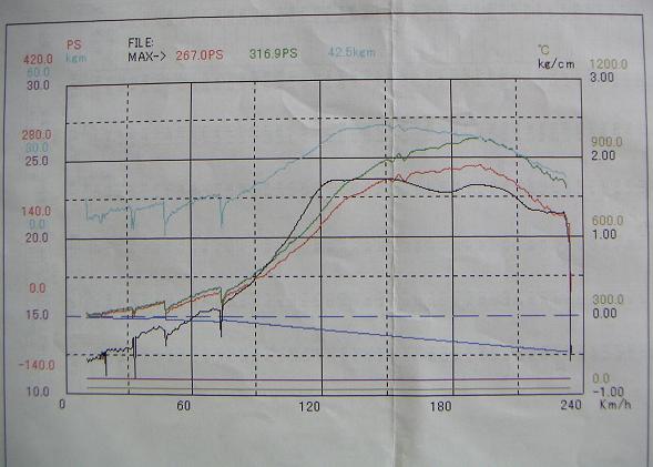 ス−パ−オ−トバックスの ロ-ラ-式計測でも267ps/42.5kg
