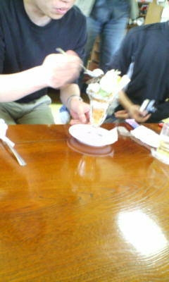 昼食は南国市の某店舗のメニュ−に飛びついたチャレンジャ−が・・かつおパフェ にんにく味だったそうな